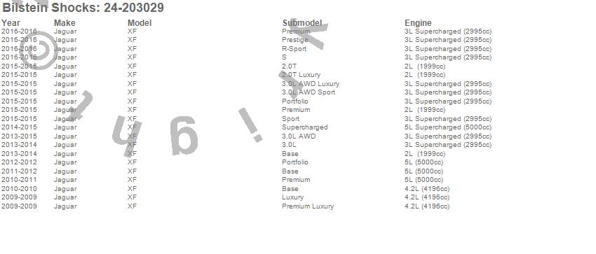 Below is an abreviated list of applications for the B4 Series OE Replacement Shock Absorber.