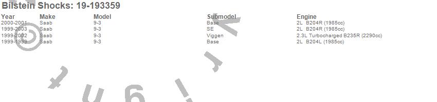 Below is an abreviated list of applications for the B4 Series OE Replacement Shock Absorber.