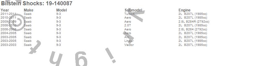 Below is an abreviated list of applications for the B4 Series OE Replacement Shock Absorber.