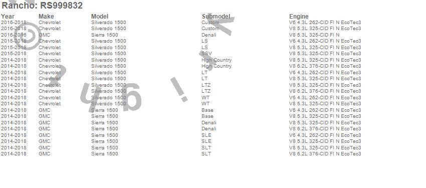 Below is an abreviated list of applications for the RS9000XL Series Suspension Strut Assembly.