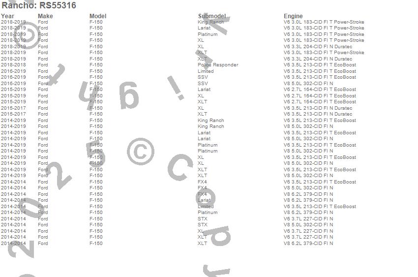 Below is an abreviated list of applications for the RS5000X Series Shock Absorber.