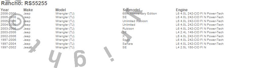 Below is an abreviated list of applications for the RS5000X Series Shock Absorber.