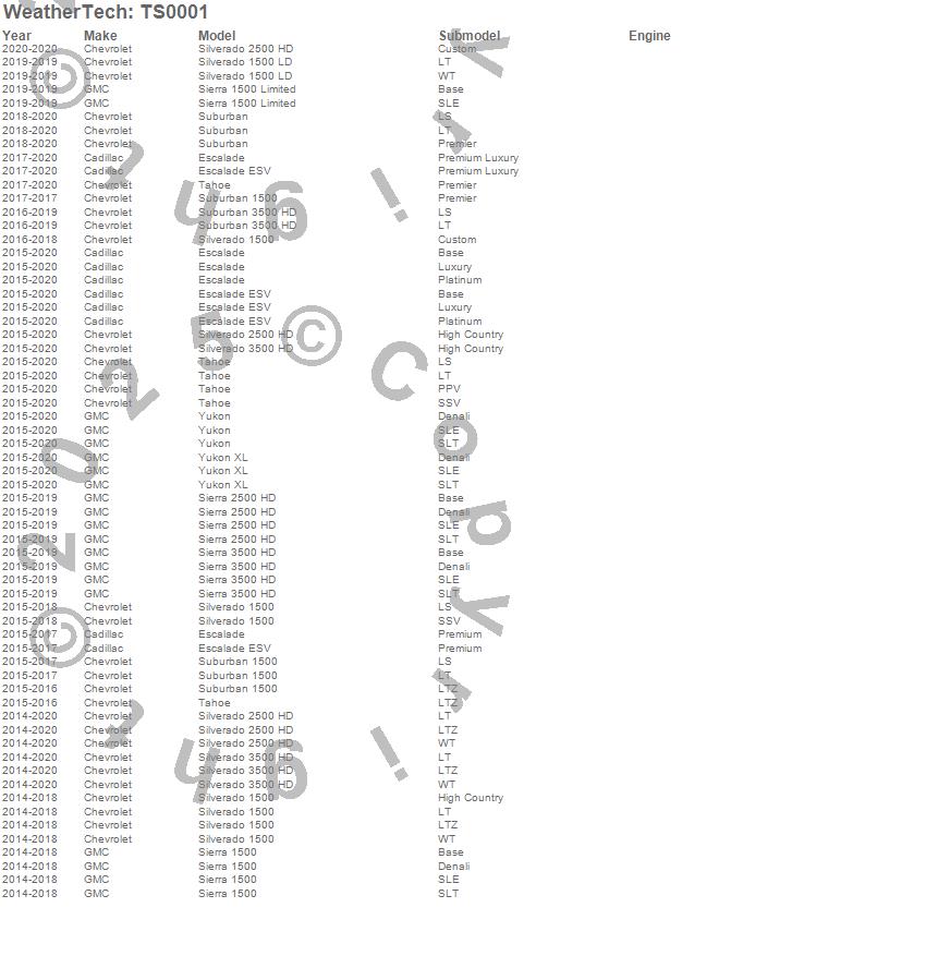 Below is an abreviated list of applications for the WeatherTech TechShade.