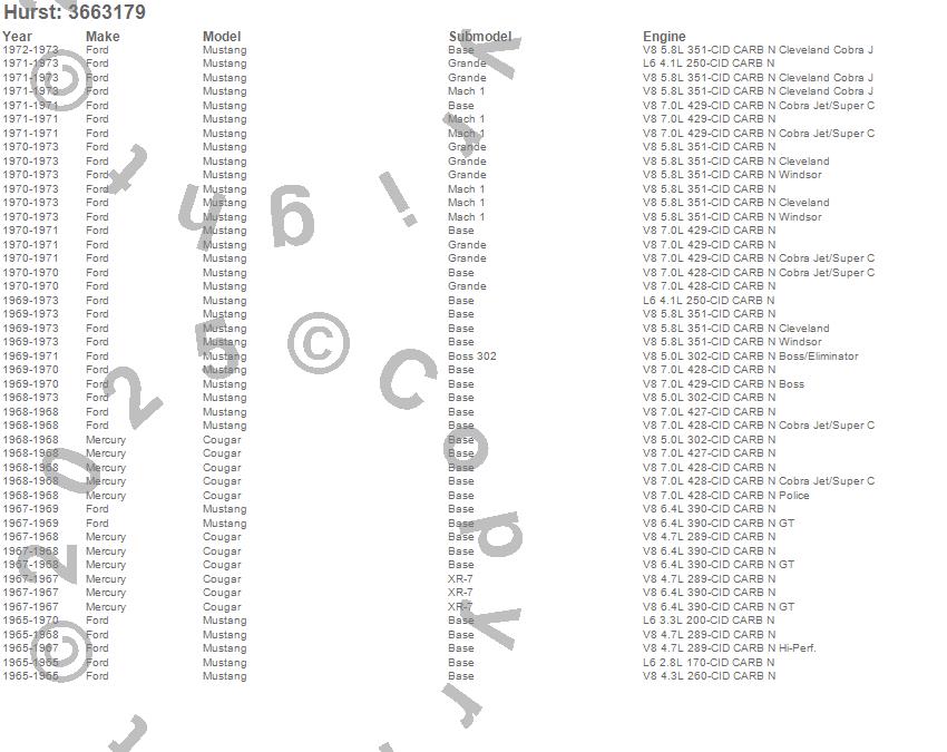 Below is an abreviated list of applications for the Mastershift 3-Speed Manual Shifter.