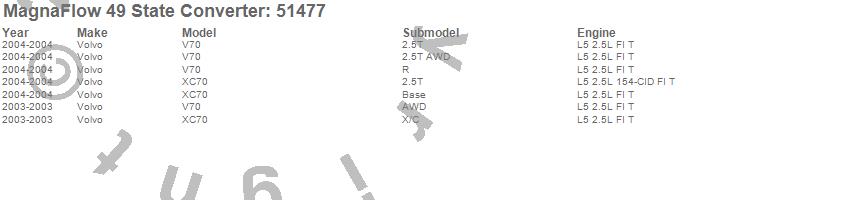 Below is an abreviated list of applications for the Direct Fit Catalytic Converter.