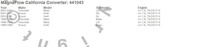 Below is an abreviated list of applications for the Direct Fit California Catalytic Converter.