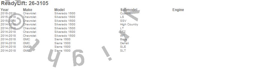 The Best Truck Leveling & Lifting Systems - Guaranteed to maintain your factory ride! ReadyLift Suspension Inc. is the #1 preferred manufacturer of truck and SUV Suspensions Leveling and Lift Kits that are guaranteed to retain your factory ride while providing the looks and lift every truck owner wants. Check out our new Top Mount Strut Extensions, Forged Torsion Bar Keys, OEM Style Lift Blocks, Mild Lift Kits and more!