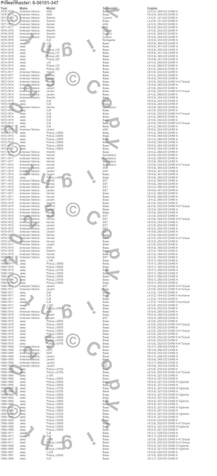 Powermaster Alternator # 8-56101-347 - Jeep Upgrade - Black - 100 Amp - 1V Pulley/Baffle - 1 Wire - Motorola Replacement 1in. Mt