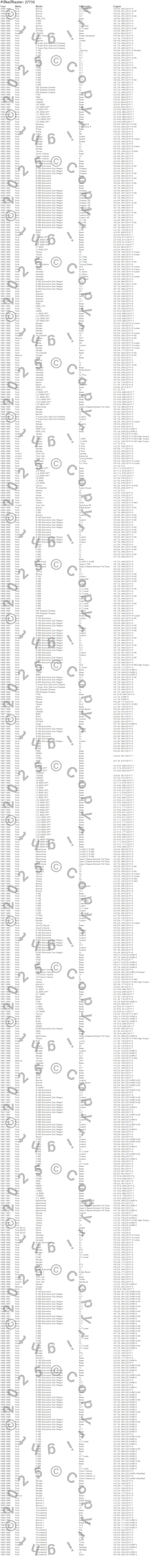 Aerostar, B600, B700, B7000, Bronco, Bronco II, C8000, Cargo, CF6000, CF7000, CF8000, CL 9000, CL 9000 OPT, CL-9000, CLT 9000, Country Squire, Crown Victoria, E-150 Econoline, E-150 Econoline Club Wagon, E-250 Econoline more…