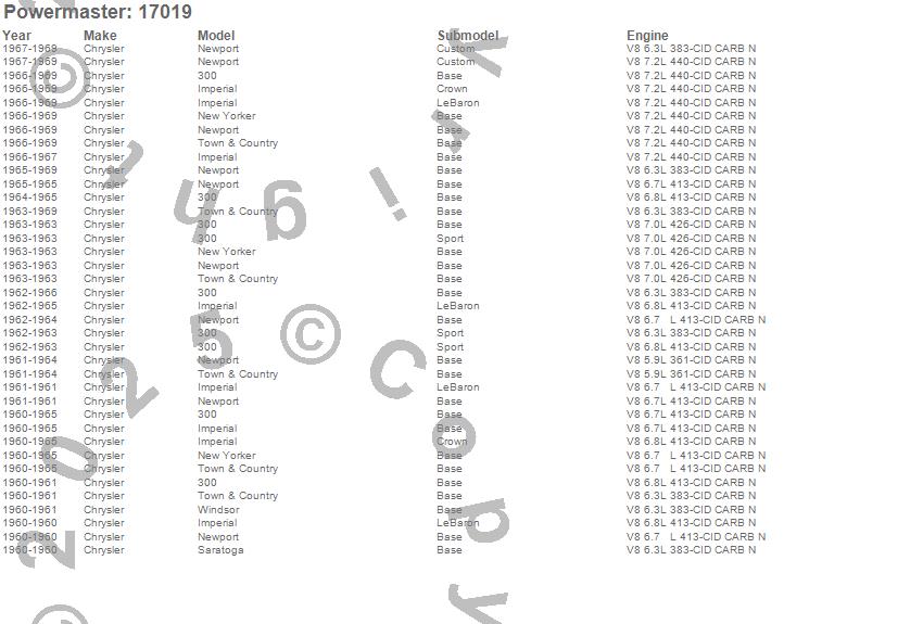 Powermaster Alternator # 17019 - Early Chrysler - 75 Amp - Double Pulley - Single Field Round Back - chrome