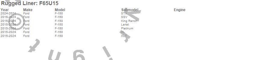 Rugged Liner Rugged Liner Under Rail Bed Liner F65U15 Features: