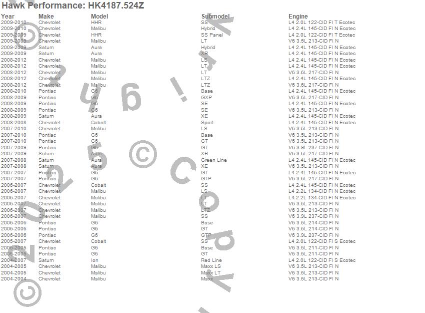 Below is an abreviated list of applications for the Sector 27 Brake Kits.