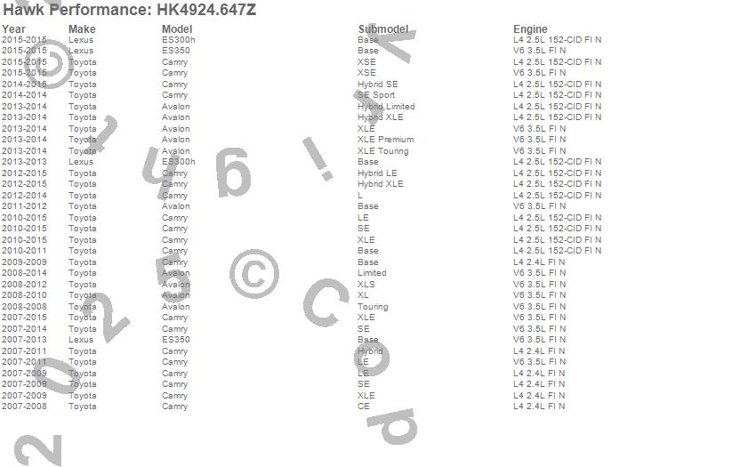 Hawk Performance Sector 27 Brake Kits # HK4924.647Z - w/PC Pads - Front