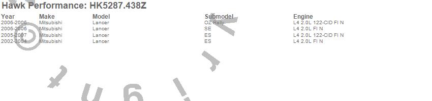 Sector 27 Brake Kits - Hawk Performance HK5287.438Z UPC: 840653117133