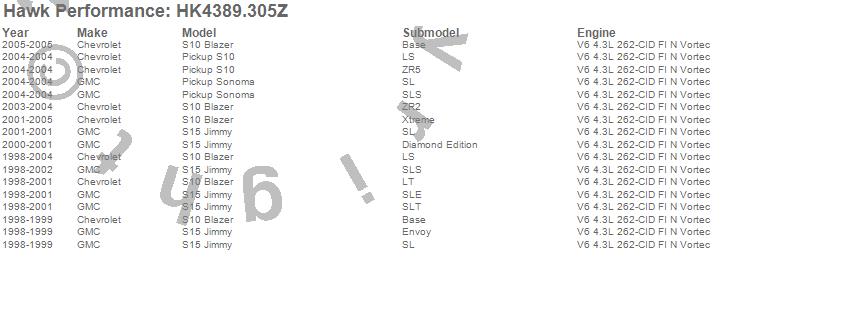 Below is an abreviated list of applications for the Sector 27 Brake Kits.