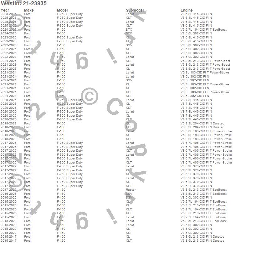 Below is an abreviated list of applications for the ProTraxx 4 in. Oval Step Bar Cab Length.