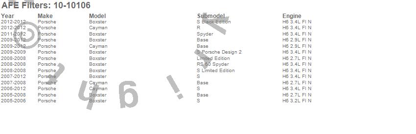 Below is an abreviated list of applications for the Direct Fit IRF PRO 5R OE Replacement Air Filter.