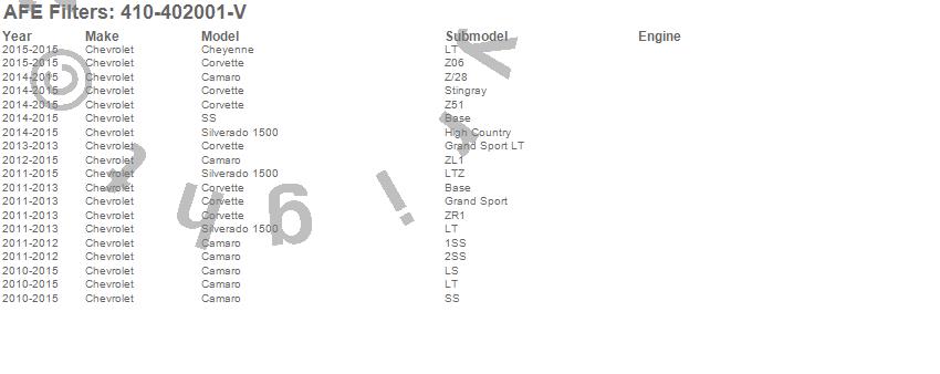 Below is an abreviated list of applications for the aFe Control Lowering Springs.