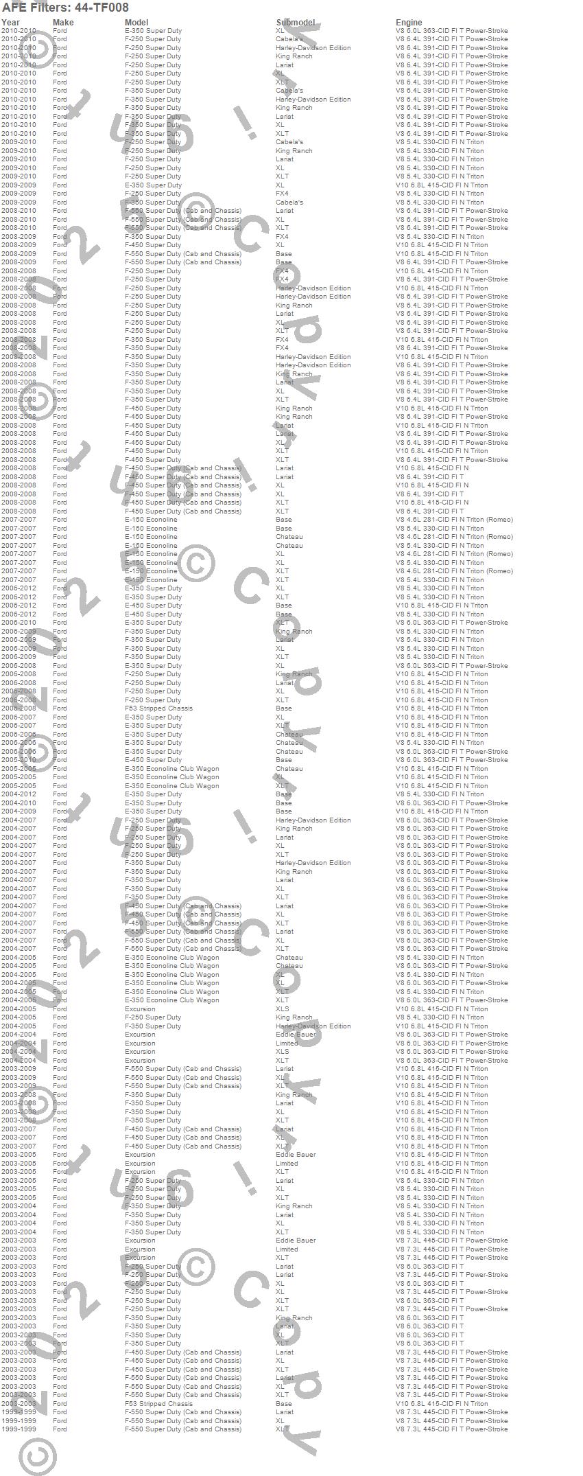 Below is an abreviated list of applications for the Pro-GUARD D2 Trans Fluid Filter.