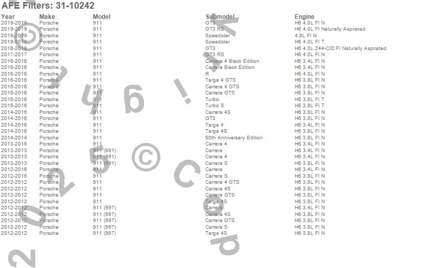 Below is an abreviated list of applications for the MagnumFLOW OE Replacement PRO DRY S Air Filter.
