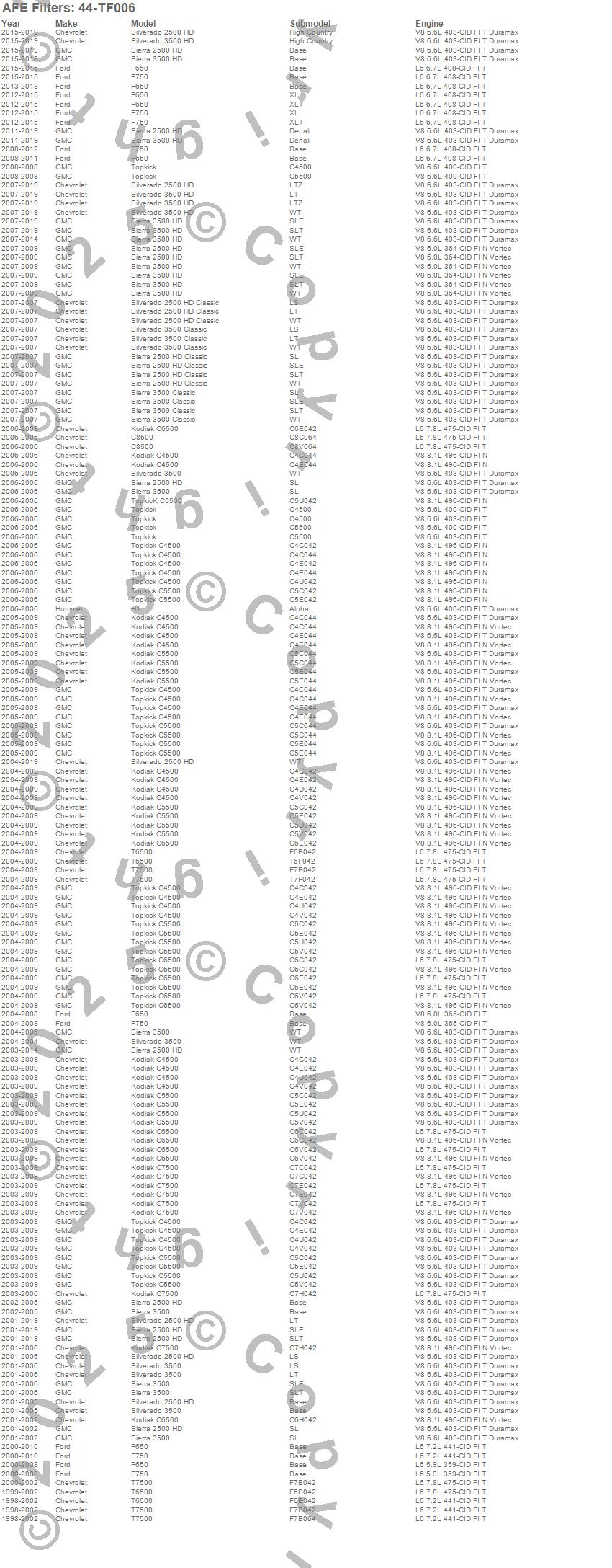 Below is an abreviated list of applications for the Pro-GUARD D2 Trans Fluid Filter.