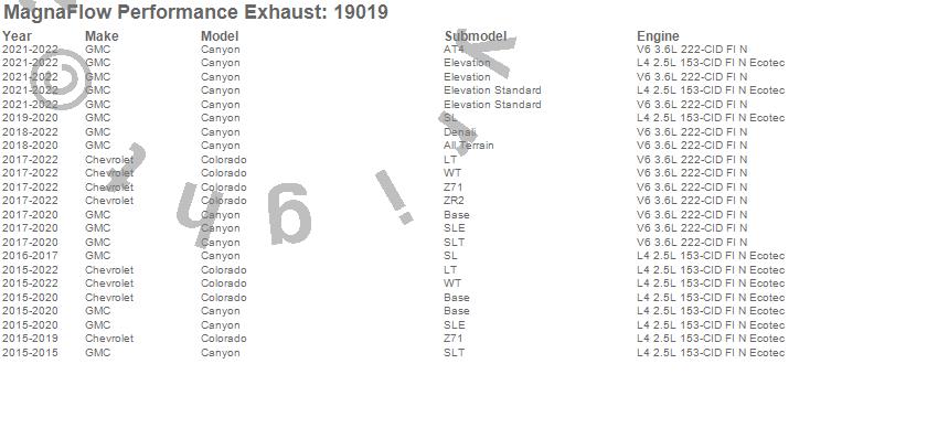 Below is an abreviated list of applications for the MF Series Performance Cat-Back Exhaust System.