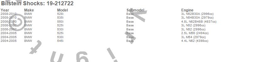 Below is an abreviated list of applications for the B4 Series OE Replacement Shock Absorber.