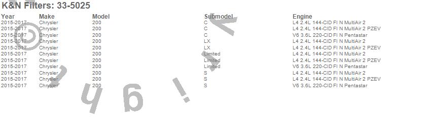 Below is an abreviated list of applications for the Air Filter.