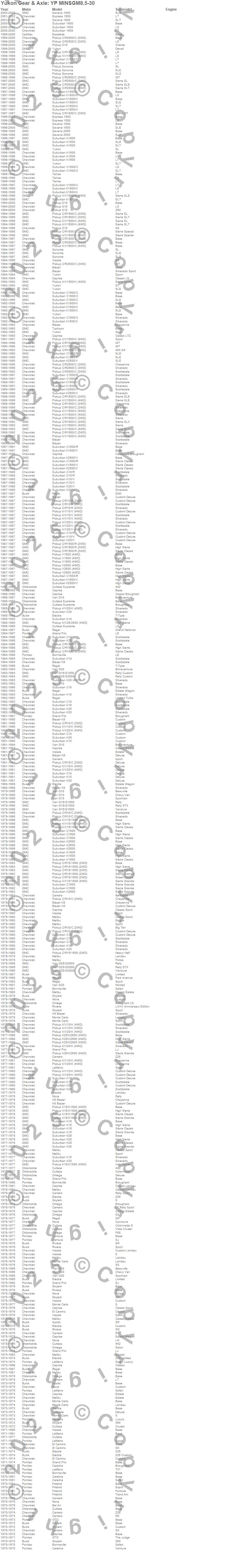 Blazer, Blazer K5, C15/C1500, C1500, C1500 Pickup, Camaro, Caprice, El Camino, Express 1500, Express 2500, G10 Van, G20 Van, K1500, K1500 Pickup, K1500 Suburban, K25 Pickup, K2500 Pickup, R1500 Pickup, S15 Jimmy, Savana 2500 more…