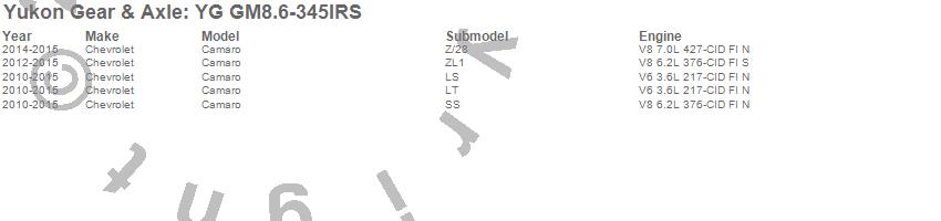 Below is an abreviated list of applications for the High Performance Ring And Pinion Set.