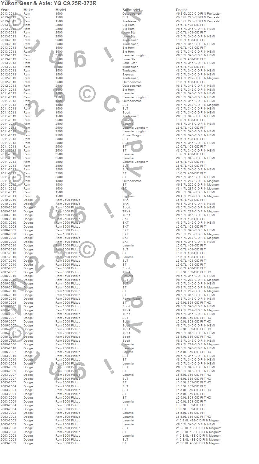 Below is an abreviated list of applications for the Ring And Pinion Gear Set.