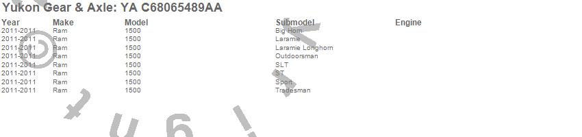 Yukon Gear & Axle Axle Shaft YA C68065489AA Features: