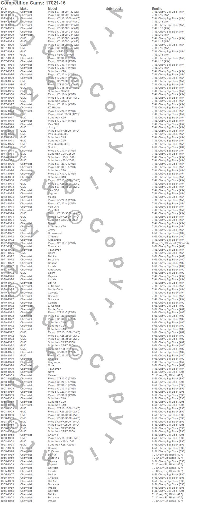 Bel Air, Biscayne, Blazer, Blazer K5, Brookwood, C10 Pickup, C10 Suburban, C15 Suburban, C15/C1500, C15/C1500 Suburban, C1500, C1500 Suburban, C20 Pickup, C20 Suburban, C25 Suburban, C25/C2500 Pickup, C25/C2500 Suburban, C2500 Pickup, C2500 Suburban, C30 Pickup more…