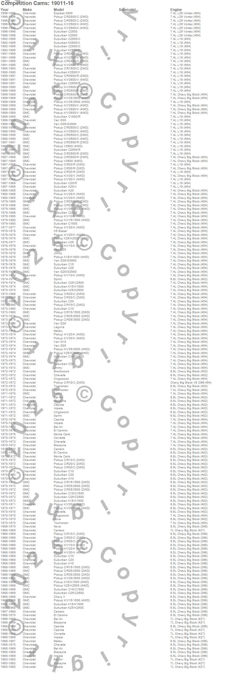 Bel Air, Biscayne, Blazer, Blazer K5, Brookwood, C10 Pickup, C10 Suburban, C15 Suburban, C15/C1500, C15/C1500 Suburban, C1500, C1500 Pickup, C1500 Suburban, C20 Pickup, C20 Suburban, C25 Suburban, C25/C2500 Pickup, C25/C2500 Suburban, C2500 Pickup, C2500 Suburban more…