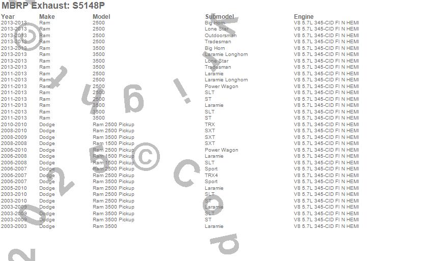 Below is an abreviated list of applications for the Pro Series Cat Back Exhaust System.