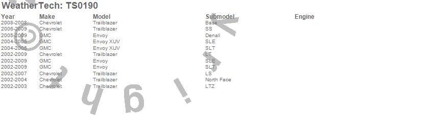 Below is an abreviated list of applications for the WeatherTech TechShade. Envoy, Envoy XUV, Trailblazer, Chevrolet, GMC, 2009, 2008, 2007, 2006, 2005, 2004, 2003, 2002 more…