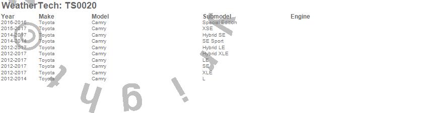 Below is an abreviated list of applications for the WeatherTech TechShade.