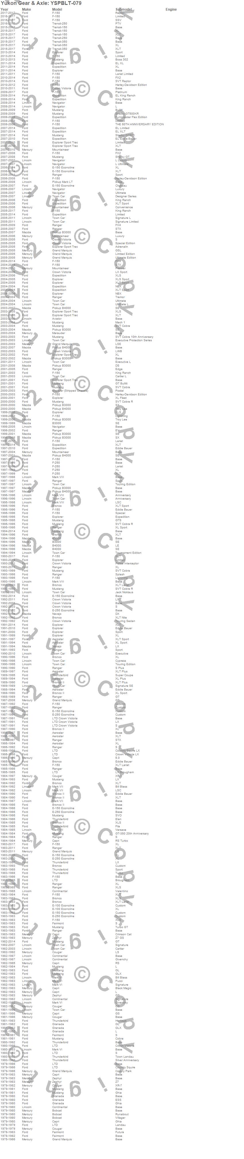 Below is an abreviated list of applications for the Differential Cover Bolt.