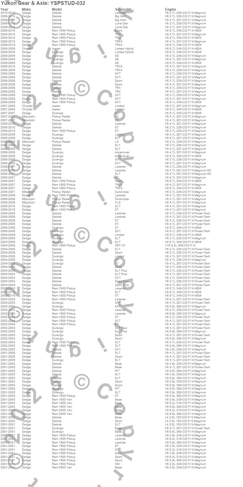 Yukon Gear & Axle Axle Stud YSPSTUD-032 Features: