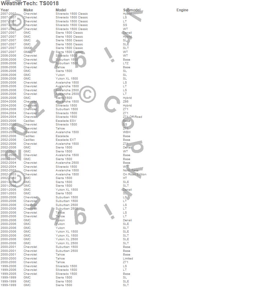 Below is an abreviated list of applications for the WeatherTech TechShade.