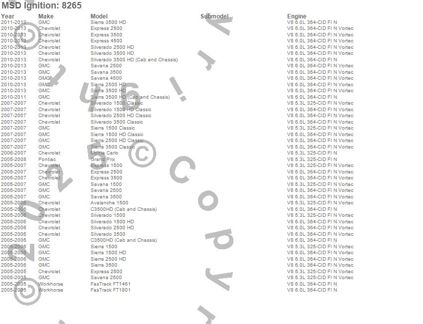 Avalanche 1500, C3500HD, Express 1500, Express 2500, Express 3500, Express 4500, FasTrack FT1461, FasTrack FT1801, Grand Prix, Monte Carlo, Savana 1500, Savana 2500, Savana 3500, Savana 4500, Sierra 1500, Sierra 1500 Classic, Sierra 1500 HD, Sierra 1500 HD Classic, Sierra 2500 HD, Sierra 2500 HD Classic more…