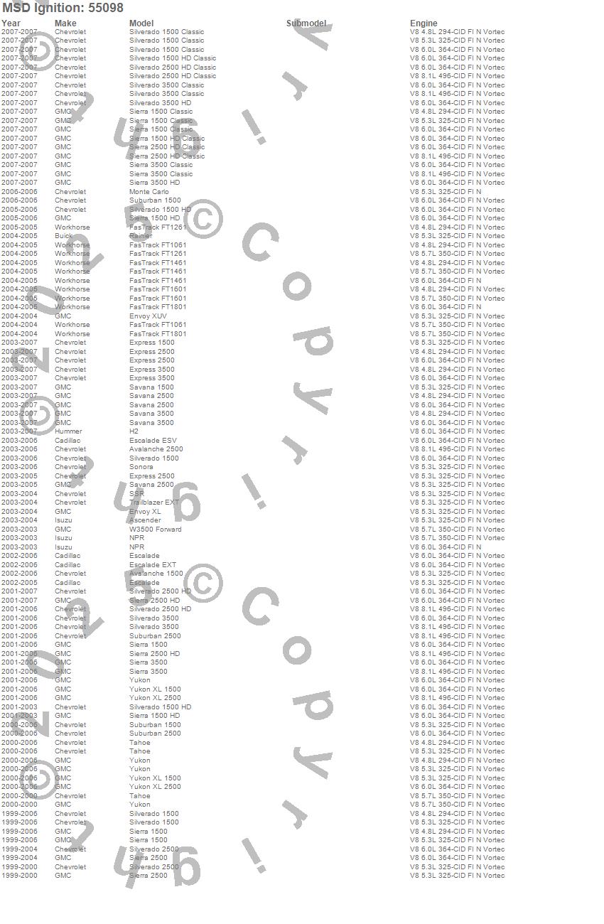 Below is an abreviated list of applications for the Street Fire Ignition Coil.