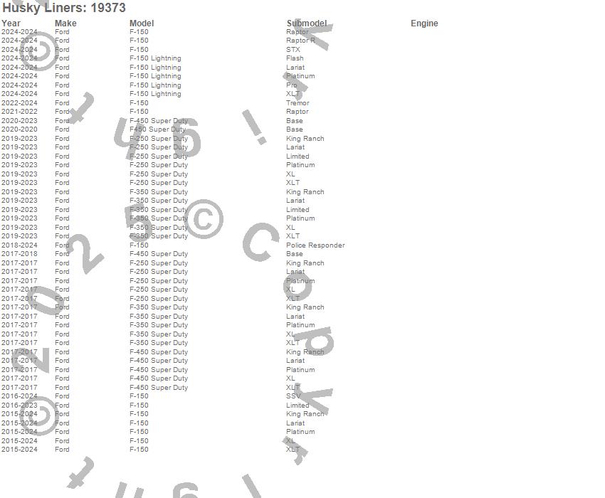 Below is an abreviated list of applications for the WeatherBeater Floor Liner.