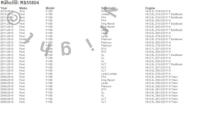 Below is an abreviated list of applications for the RS5000X Series Suspension Strut Assembly.
