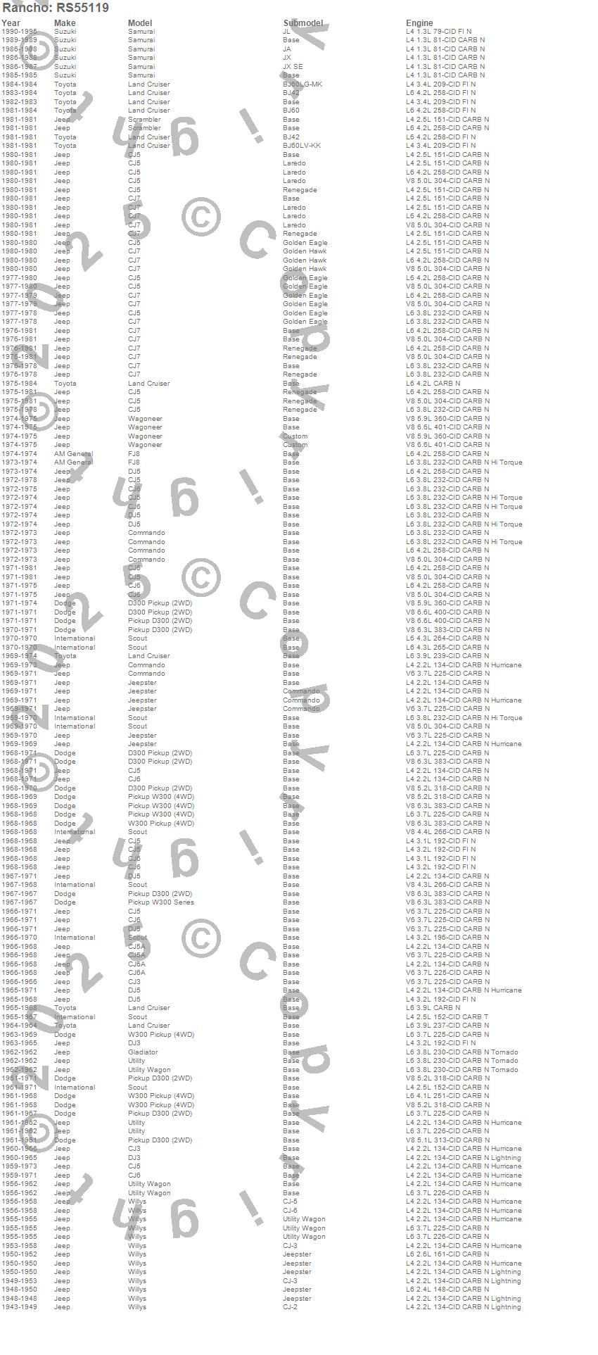 CJ-2A, CJ-3A, CJ-3B, CJ3, CJ5, CJ5A, CJ6, CJ6A, CJ7, Commando, D300 Pickup, DJ3, DJ5, DJ5A, DJ5B, DJ5C, FJ8, Gladiator, Jeepster, Land Cruiser more…