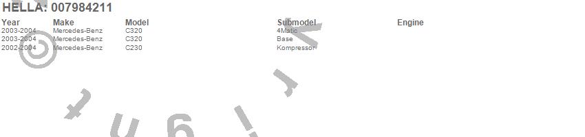 Hella Halogen Headlamp Assembly OE Replacement 007984211 Features: