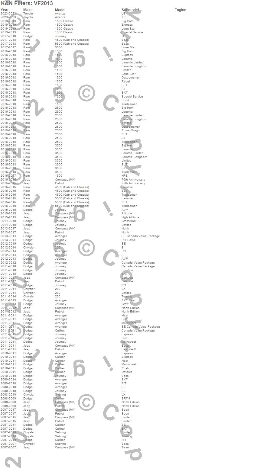 Below is an abreviated list of applications for the Cabin Air Filter.