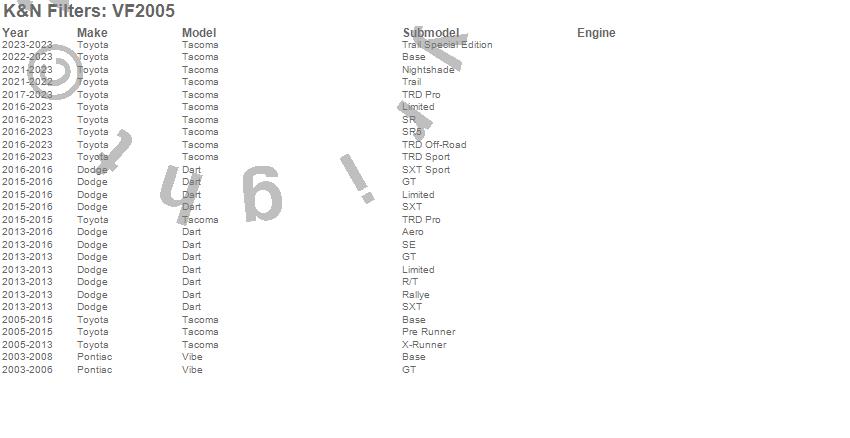 K&N Filters Cabin Air Filter VF2005 Features: