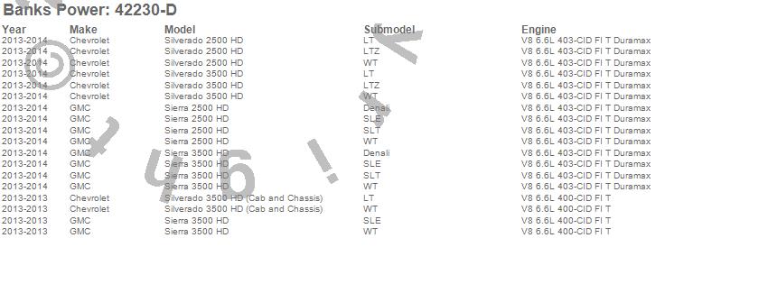 Below is an abreviated list of applications for the Banks Ram-Air Intake System.