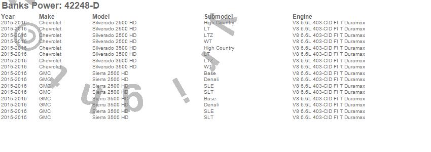 Below is an abreviated list of applications for the Banks Ram-Air Intake System.